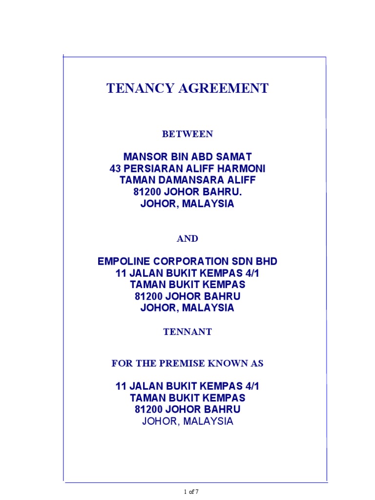 Drafting and stamping tenancy agreement | New Straits ... from assets.nst.com.my If the business is directed at and limited to a particular finite task, however, that same partnership is considered a "joint venture" and is the topic of this article. Oct 24, 2018 · so you need to adapt our template contract to fit your own circumstances. A partnership agreement is a contract between two or more business partners that is used to establish the responsibilities, and profit and loss distribution of each partner, as well as other rules about the general partnership, like withdrawals, capital contributions, and financial reporting. Knowing the benefits of having a joint venture agreement as well as the types you can make would probably get you thinking about starting one to improve your business. May 28, 2021 · an moa serves as a legal document and describes the terms and details of the partnership agreement. Mar 11, 2021 · a lease agreement (or rental agreement) is a document that explains the terms under which a tenant rents a residential or commercial property from a landlord. Should the partnership be terminated by unanimous vote, the assets and cash of the partnership shall be used to pay all creditors, with the remaining amounts to be distributed to the This basic limited liability partnership agreement template is a simple partnership agreement that you can use to lay down the duties and responsibilities of the parties and use it as a reference for the rest of the terms of the agreement.